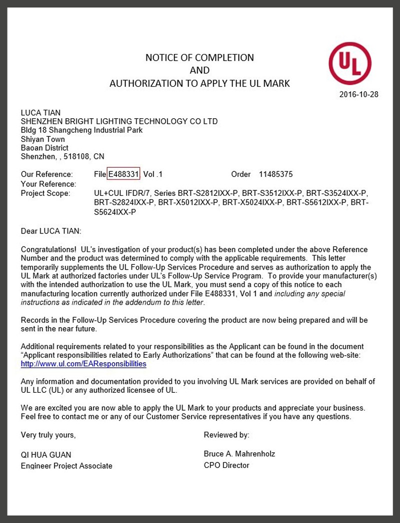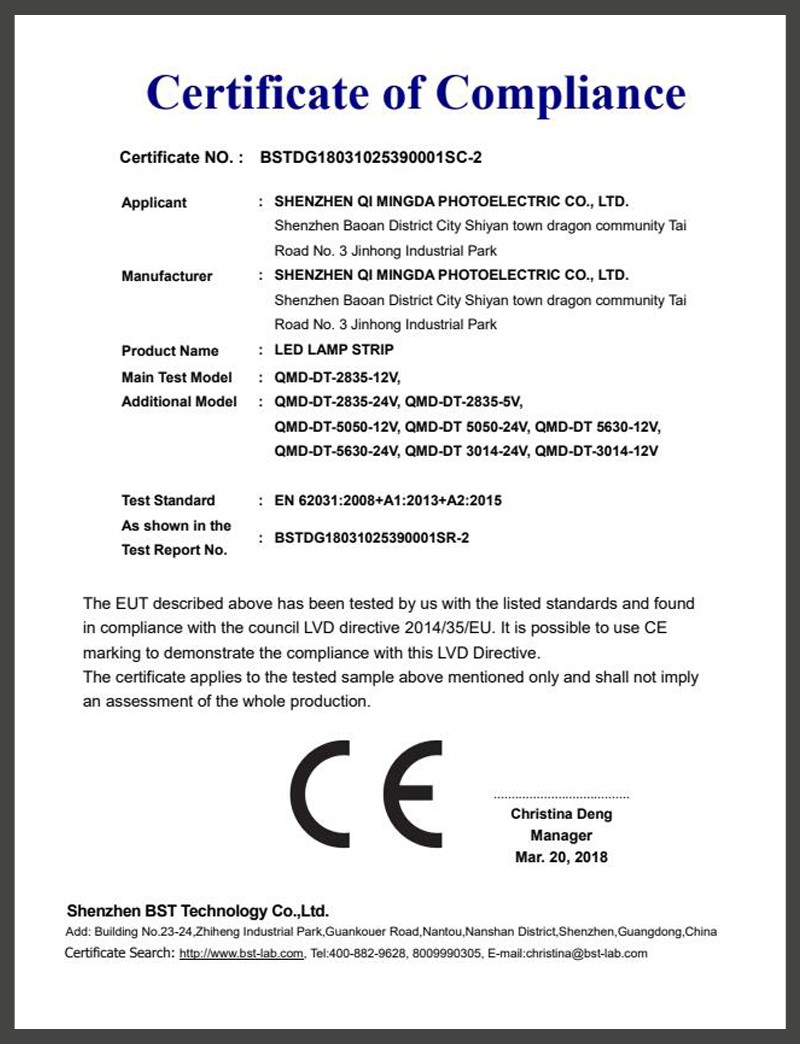 Products have passed UL, ETL, CE, IEC62471 and other certifications. Products are widely used in machinery and equipment, beauty, furniture, hotel decoration, outdoor lighting, commercial lighting and other fields